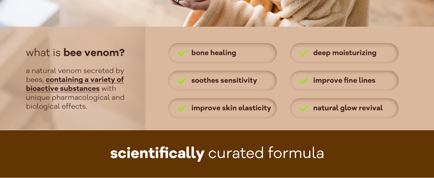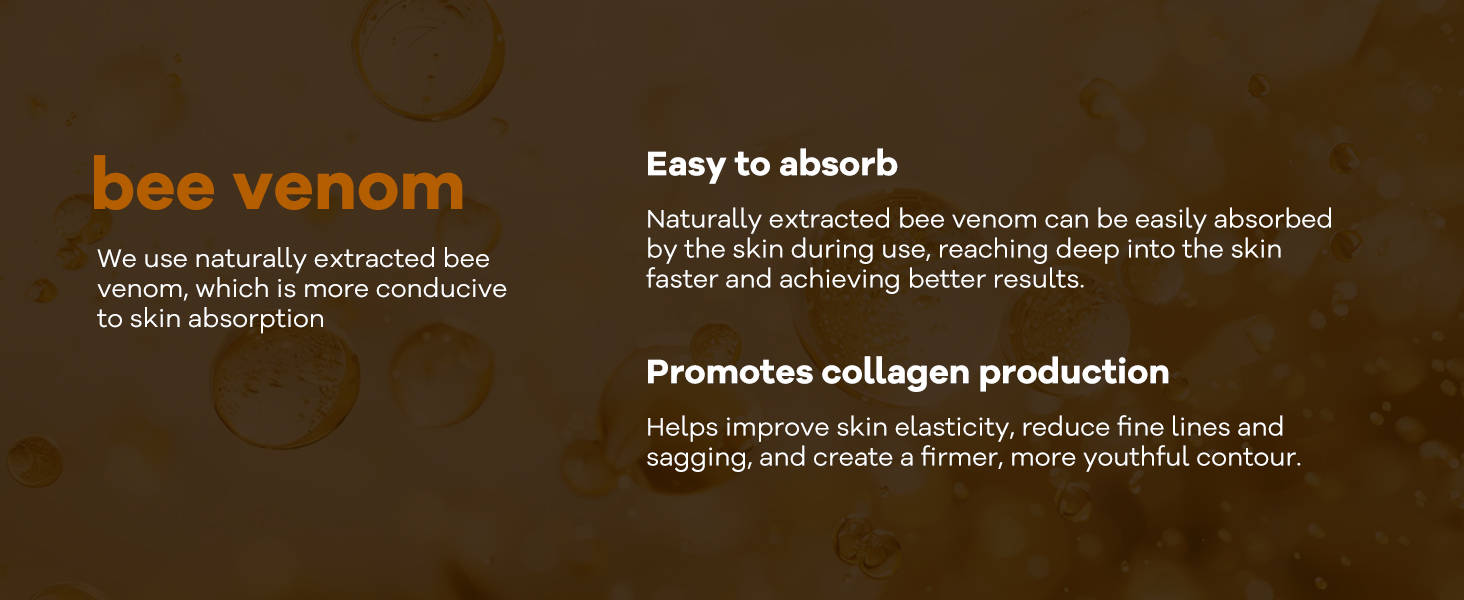 - Dual Action: Instant Lift + Long-Term Repair:Feel an immediate skin-firming boost as bee venom works to mimic natural Botox effects. With consistent use, deep wrinkles fade and skin tone evens out, thanks to the regenerative power of bee venom and hyaluronic acid