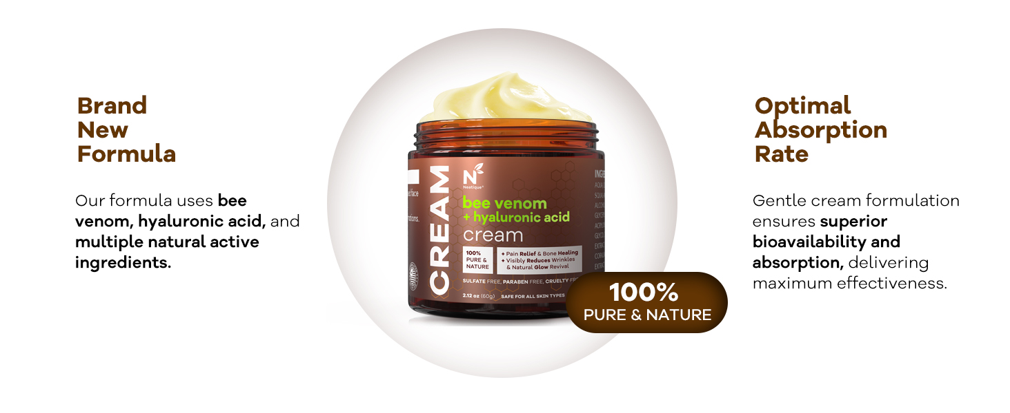 - Natural Bee Venom & Hyaluronic Acid Fusion:Harnessing the power of 100% natural bee venom and hyaluronic acid, this anti-aging cream stimulates collagen synthesis and deeply hydrates to visibly reduce wrinkles, fine lines, and sagging skin. Experience skin tightening and a radiant, youthful glow with every use