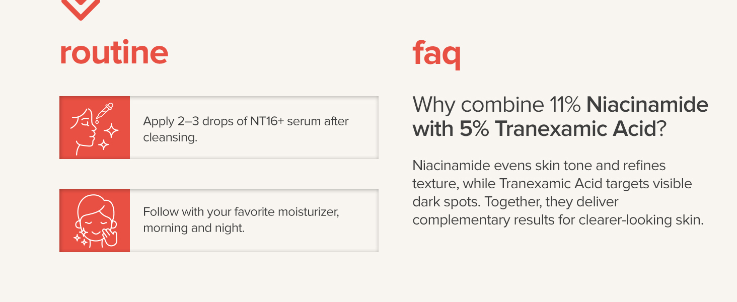 - Niacinamide + TXA Complex: Formulated with 11% Niacinamide and 5% Tranexamic Acid, this serum is designed to support a more even-looking complexion.